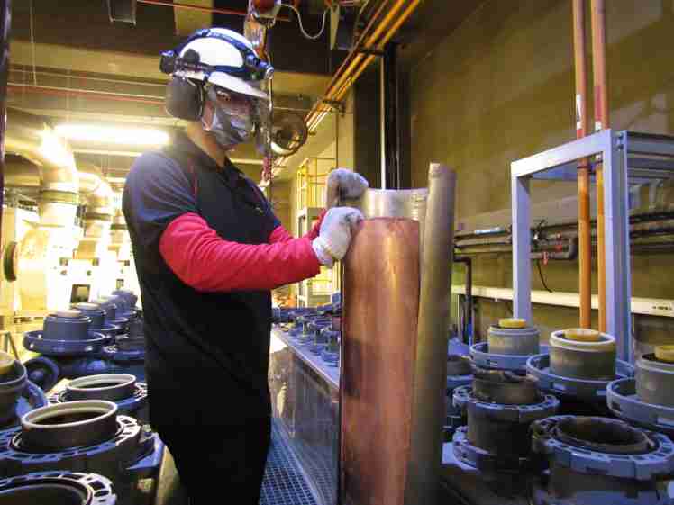 2121非凡将废弃物转化成有效的工业或民生原物料,,图为废铜液淬炼后再制成纯度极高的铜管