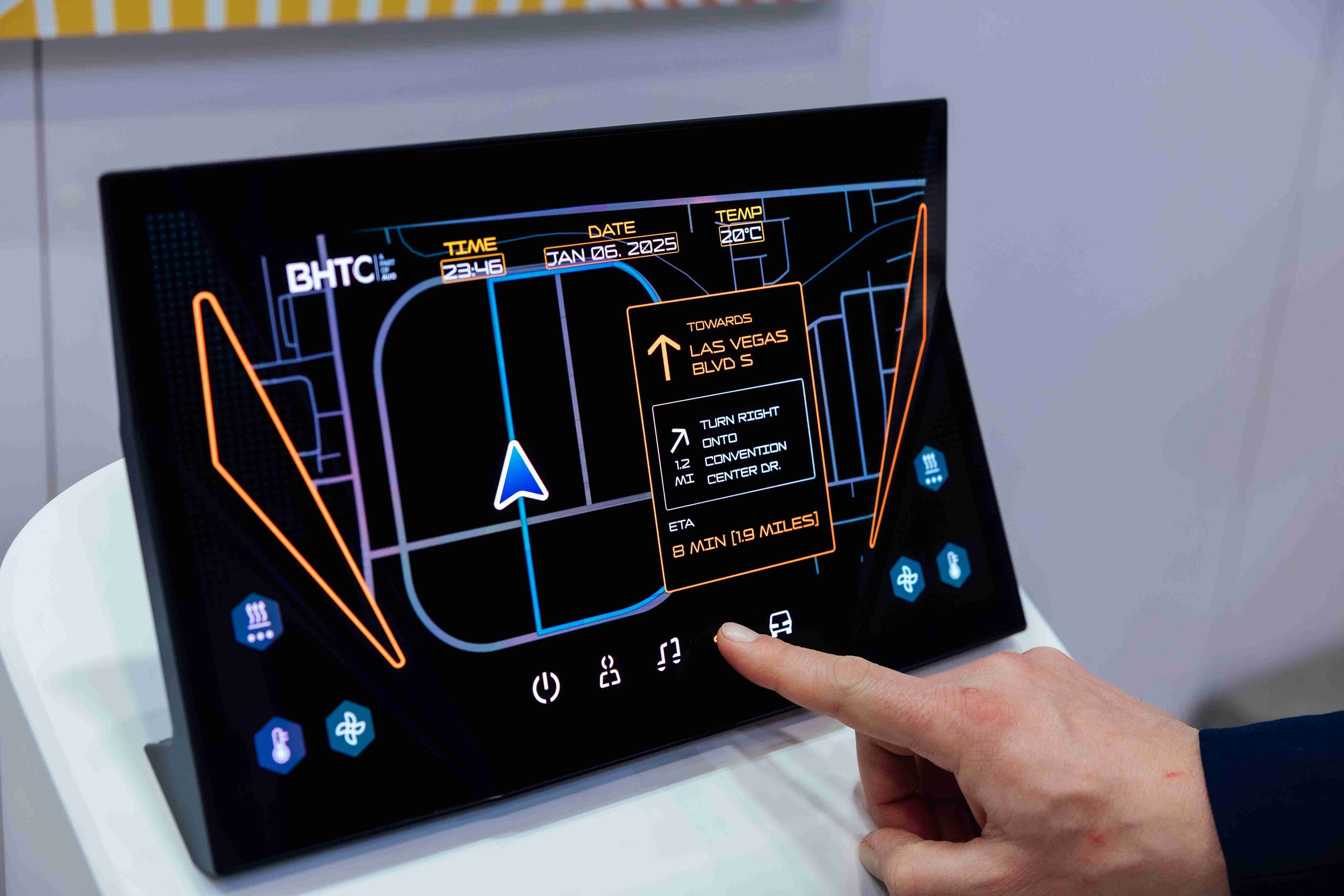 Micro LED可折迭触控显示器(Haptifold Display)结合BHTC多年HMI设计经验,,,整合中控台和温度控制功能,,,,以优美的曲面和独特的外型助力车内设计美学,,,在辅以触控回馈下,,,为驾驶带来更直觉的使用体验。。。。
